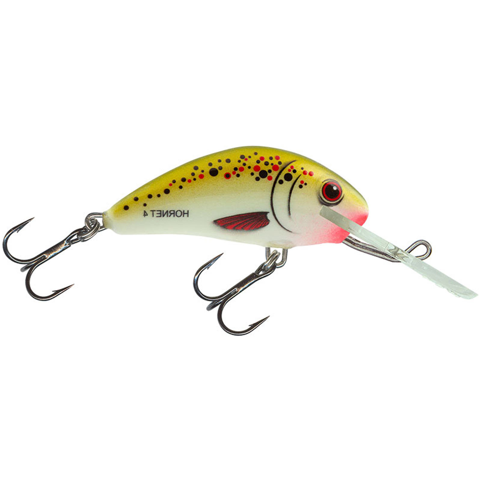Wenn's um Raubfischangeln geht, ist der Salmo Rattlin Hornet ein absoluter Klassiker! Der schwimmende Wobbler mit 6,5 cm Länge und 20 g Gewicht hat eine irre Aktion und wirft super weit. Perfekt zum Spinnfischen und Schleppen, taucht er etwa 2,5-5,0 Meter tief. Das Yellow Holographic Perch Design sieht nicht nur cool aus, es lockt die Fische auch richtig an. Egal ob Hecht, Zander oder Barsch - mit diesem Köder machst du nichts verkehrt. Kommt natürlich einzeln verpackt und ready to fish. Einfach auspacken, ans Vorfach und ab an den See!
