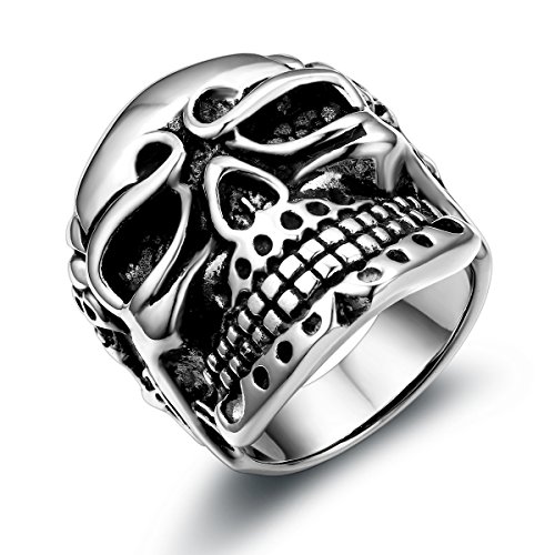 • JewelryWe Herren Ring Totenkopf - Edelstahl Biker Ring Größe 62 Gotik Schädel