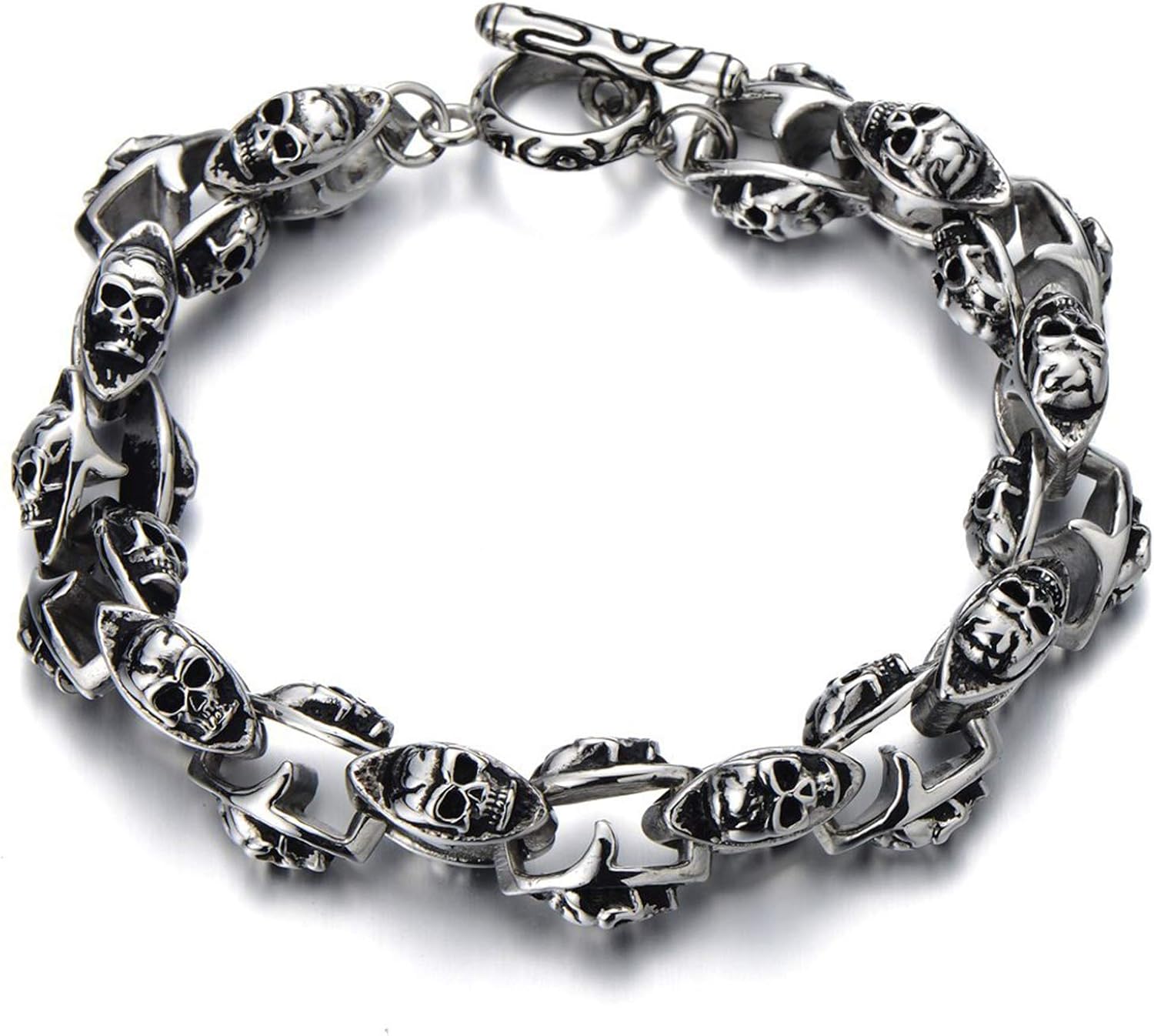 JewelryWe Herren Ring Totenkopf - Edelstahl Biker Ring Größe 62 Gotik Schädel