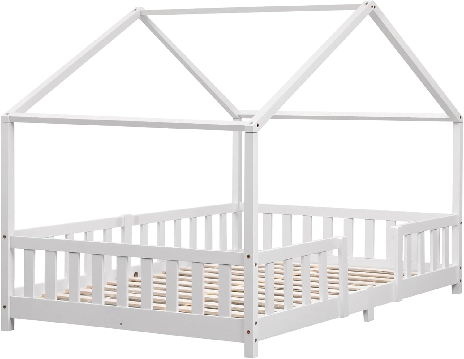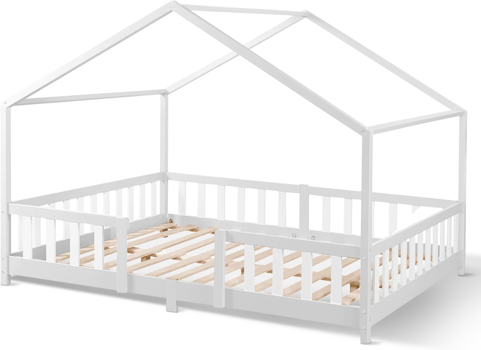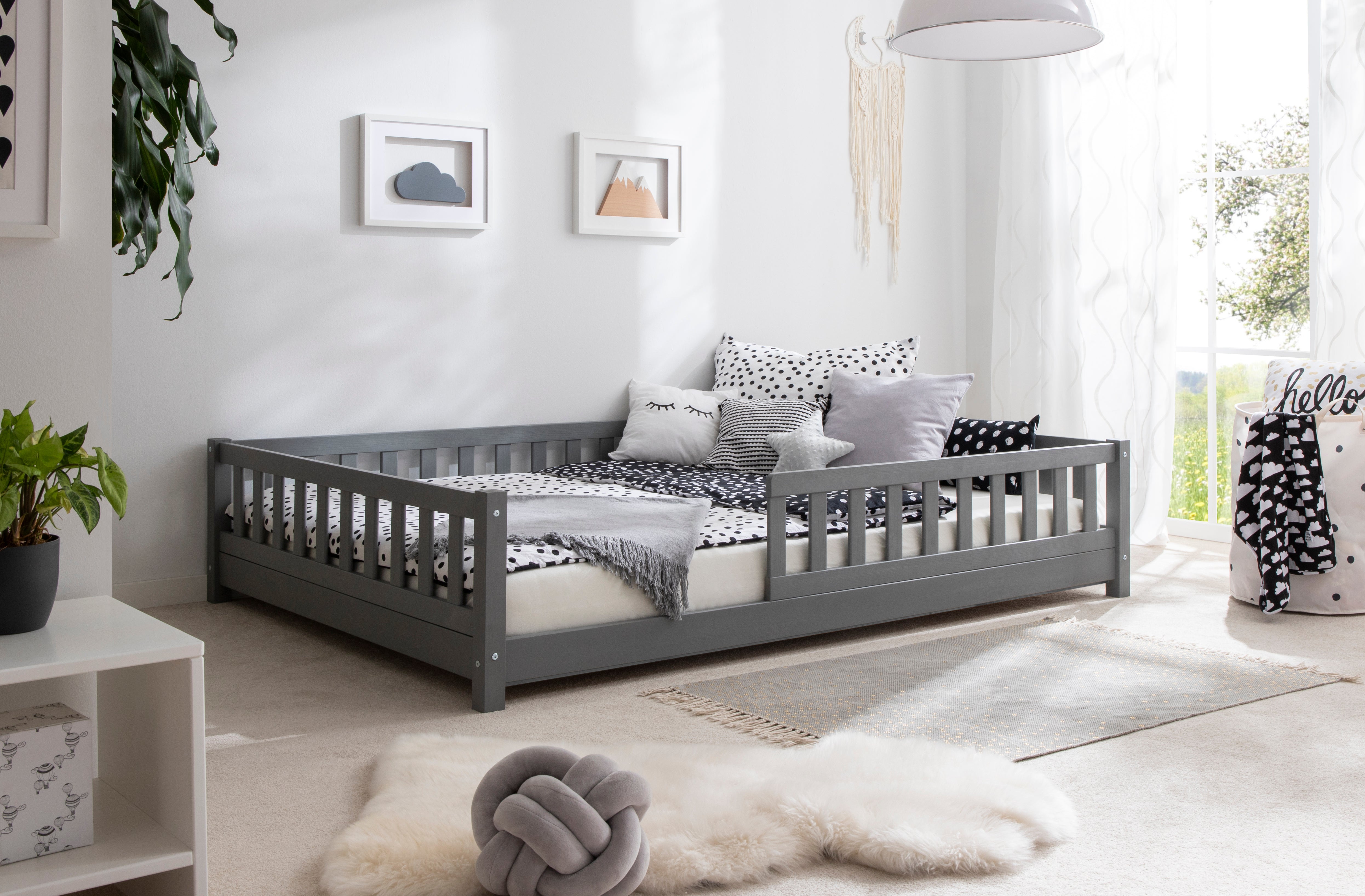 Wow, was für ein zauberhaftes Kinderbett! Das en.casa Ydre Hausbett in reinem Weiß verwandelt jedes Kinderzimmer in eine gemütliche Schlafoase. Mit 120x200cm Matratzenmaß bietet es genug Platz für süße Träume. Das Besondere: Die niedliche Zaunumrandung sieht nicht nur hübsch aus, sondern schützt dein Kind auch zuverlässig vor dem Herausfallen. Noch flexibler geht's kaum - du kannst das Bett auf zwei Arten aufbauen: Entweder mit praktischem Stauraum unten für Spielzeug oder Bettwäsche, oder als niedrigeres Bodenbett für extra Sicherheit. Aus stabilem Kiefernholz gefertigt hält das Bett bis zu 150kg aus! Die Maße von 207x130x140cm sind ideal für Kinderzimmer, und der Standard-Lattenrost ist bereits inklusive. Einfacher Aufbau, kein Hexenwerk - auch für handwerkliche Anfänger geeignet. Nur die Matratze, Kissen und Decke musst du separat besorgen. Perfekt für Mädchen und Jungs ab etwa 3 Jahren, die ihr eigenes kleines Haus im Zimmer haben wollen!