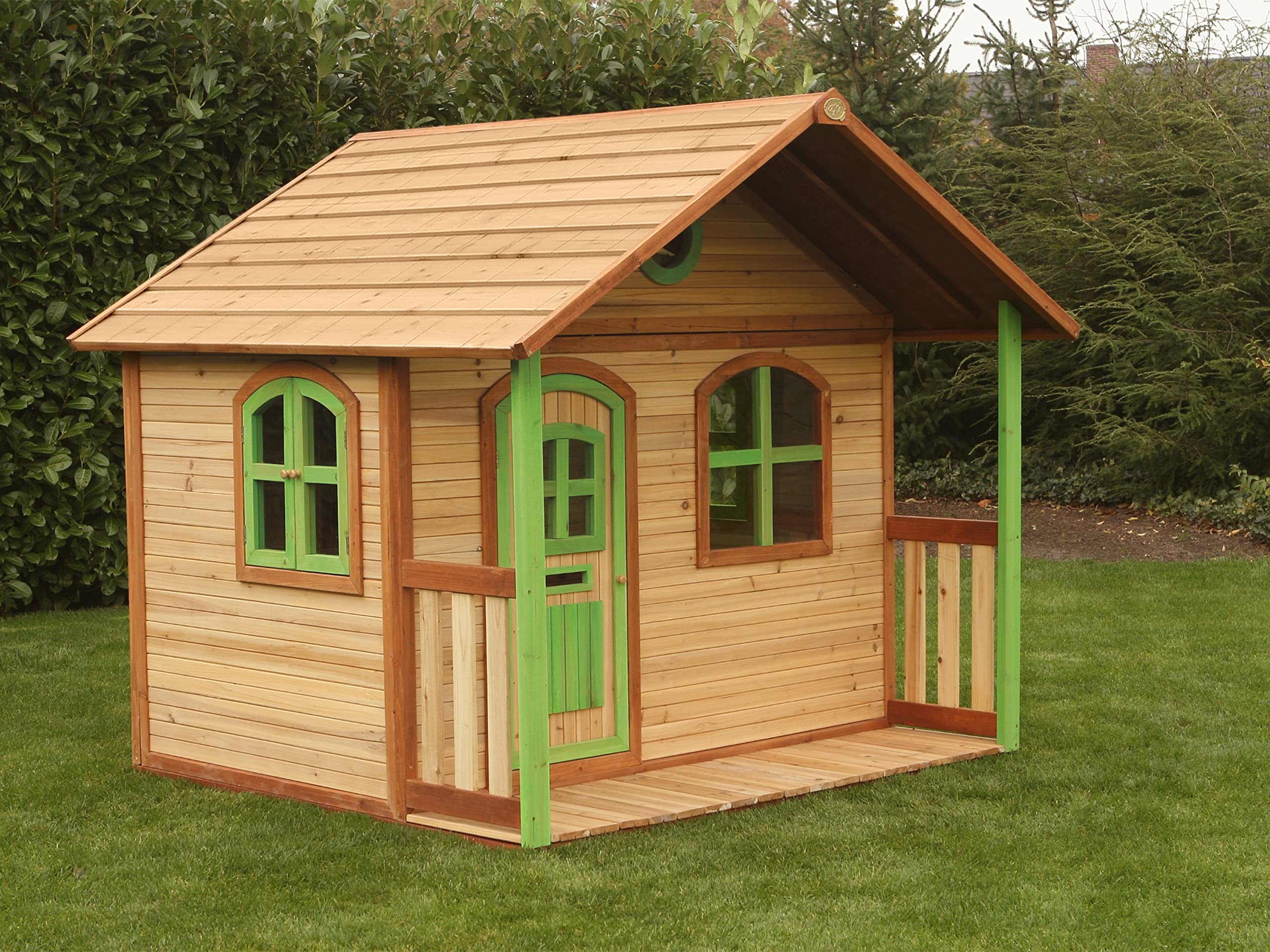Das perfekte Spielhaus für den Garten! Dieses AIYAPLAY Holz-Spielhaus im Landhausstil begeistert Kinder von 3-8 Jahren. Mit fünf Fenstern für gute Belüftung und praktischen Regenkappen als UV-Schutz. Besonders cool: Die zwei integrierten Kreidetafeln laden zum Malen und Schreiben ein, und die Fensterbank wird zur Snack-Theke oder Verkaufsstand. Das faltbare Design macht den Aufbau super einfach - klapp die Wände hoch und schon kann's losgehen! Aus stabilem Fichtenholz mit A-förmigem Dach gebaut, hält es auch wildem Spiel stand. Perfekt für Rollenspiele, Verstecken oder einfach als eigener Rückzugsort im Garten. Mehrere Kinder finden hier Platz für gemeinsame Abenteuer. Ein Spielhaus, das Kreativität fördert und Jahre lang Spaß macht - drinnen und draußen!