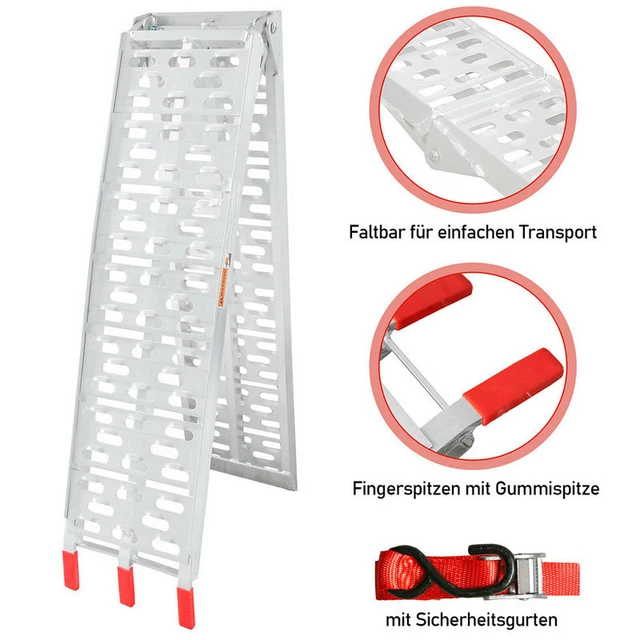 Alter, diese Auffahrrampe von FACHNUO ist der Bringer! Aus Aluminium, nur 4,3 kg pro Rampe, also leicht zu tragen. 140 cm lang, 30 cm breit, mit rutschfester Diamant-Oberfläche - selbst bei Nässe kein Problem. Tragfähigkeit 340 kg pro Rampe, also für Motorräder, ATVs, Rasenmäher oder Schneefräsen. Mit Drainagelöchern, damit Wasser abläuft, und Sicherungsstiften für stabilen Halt. Ich lade damit mein Motorrad in den Anhänger, und es klappt easy. Klappbar, also platzsparend zu verstauen. Perfekt für Privat oder Gewerbe - steigert echt die Produktivität. Wenn du oft was verladen musst, ist das ne super Investition. Einfach ausklappen, und los geht's!