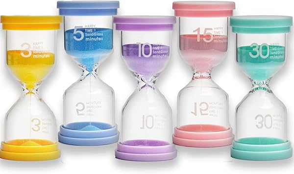Zeit sichtbar machen mit diesem bunten 8-teiligen Sanduhren-Set! Enthält Zeiten von 1, 3, 5, 10, 15, 20, 25 und 30 Minuten - perfekt für viele Situationen. Jede Sanduhr hat eine andere Farbe und ist klar beschriftet. Aus hochwertigem Borosilikatglas und umweltfreundlichem PVC, richtig stabil und sicher für Kinder. Super fürs Lernen (Hausaufgabenzeit), Spielen (Spielzeit begrenzen), Kochen oder Sport. Hilft Kindern das Zeitgefühl zu entwickeln und macht Spaß! Maße: 19x11,5x10,5cm. Tolles Geschenk für Geburtstage oder die Einschulung.