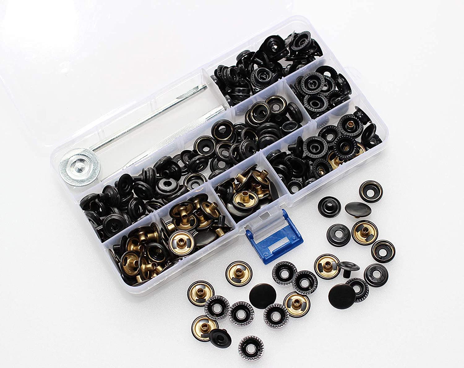 Perfekte Druckknöpfe für alle DIY-Projekte! Dieses Komplett-Set enthält 200 Teile (50 komplette Knöpfe) in 15mm Größe. Aus rostfreiem Edelstahl - stark, langlebig und verformt sich nicht. Inklusive praktischem Werkzeug: Montagestange, Stanzwerkzeug und Rundsockel. Die Aufbewahrungsbox hält alles ordentlich. Ideal für Jacken, Taschen, Lederwaren, Zelte oder Bootsplanen. Einfache Montage - einfach Stoff lochen, Knopfteile positionieren und mit dem Werkzeug zusammendrücken. Auch für Nähanfänger geeignet, aber übe lieber erst mit Altstoff!