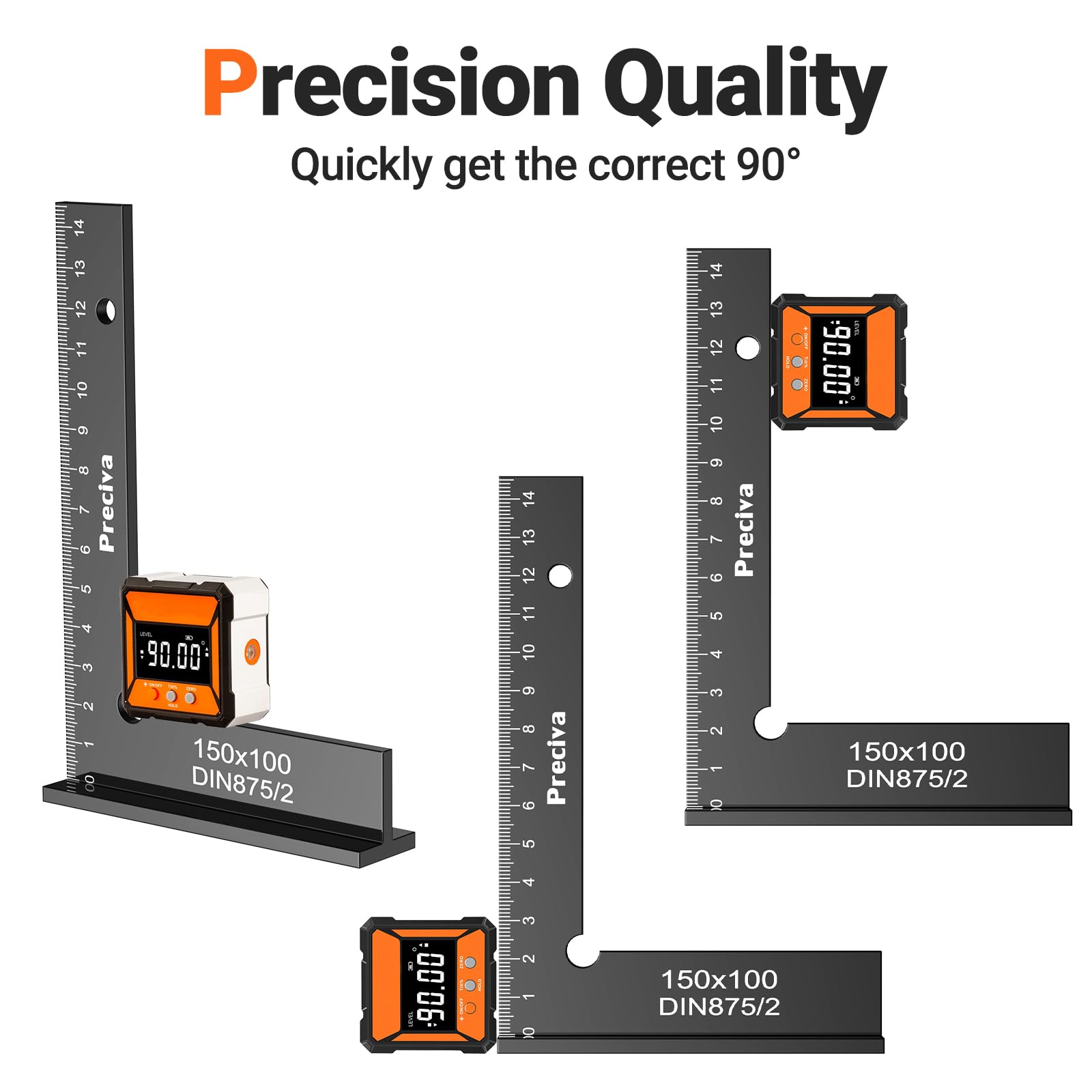 Für alle, die es genau nehmen müssen! Dieser Schlosserwinkel von Preciva ist dein perfekter Helfer in Werkstatt und Metallbau. Aus robuster Aluminiumlegierung gefertigt und schwarz eloxiert, liegt er gut in der Hand und ist langlebig. Die klare Zentimeterskala auf beiden Seiten macht das Ablesen super einfach - ob innen oder außen, du hast immer den perfekten 90-Grad-Winkel im Blick. Mit den Maßen 150 x 100mm ist er ideal für präzise Arbeiten, wo es auf Millimeter ankommt. Besonders praktisch: Er eignet sich auch als Messwerkzeug für enge Bereiche, wo normale Lineale nicht hinkommen. Ob du Möbel baust, Metallteile kontrollierst oder im Handwerk arbeitest - dieser Winkel gibt dir die Sicherheit, dass alles exakt im rechten Winkel sitzt. Kein Verziehen, kein Schummeln - nur präzise Ergebnisse! Ein Muss für jeden, der Wert auf Genauigkeit legt und sich nicht mit 'ungefähr' zufrieden gibt.